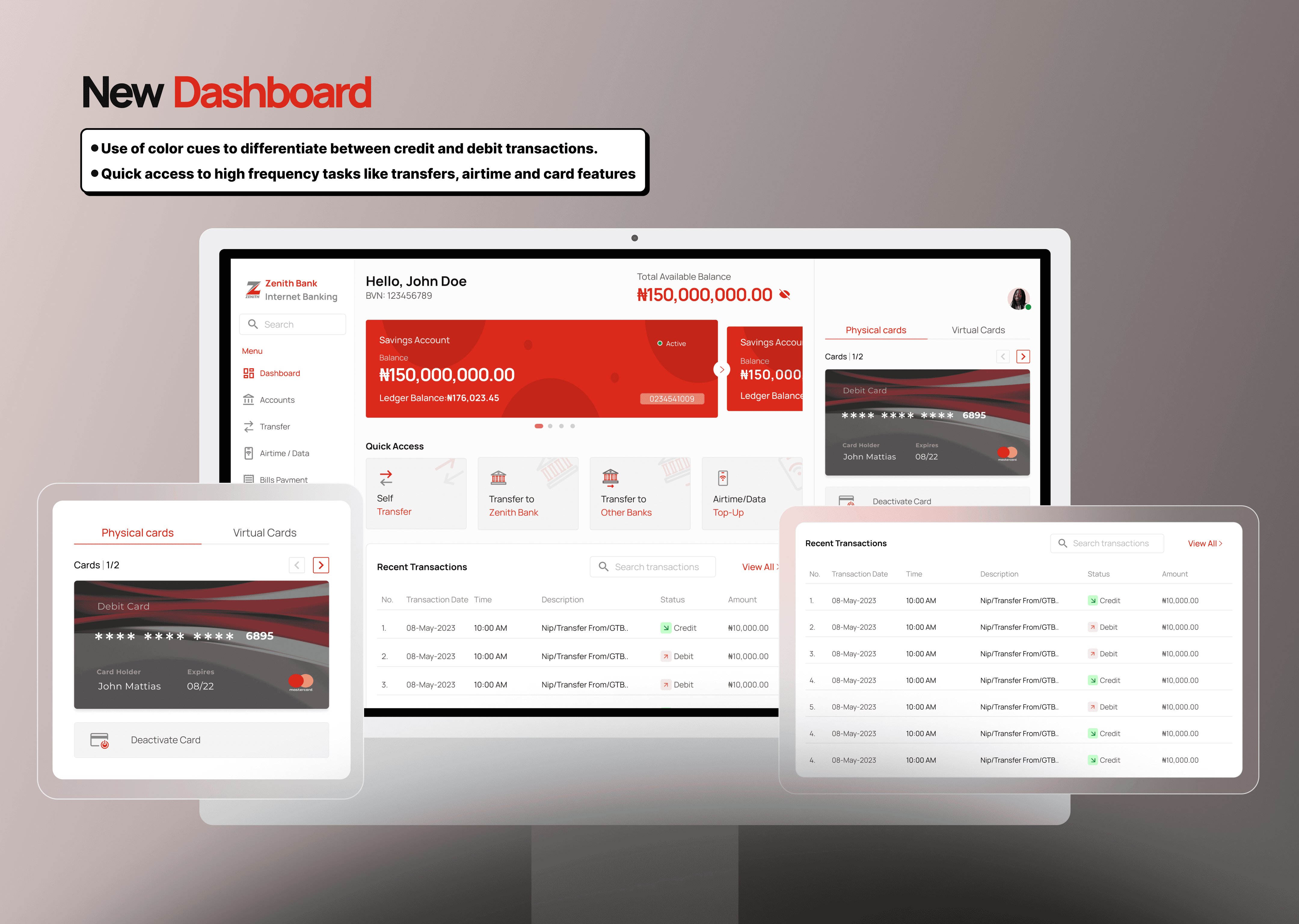 The redesign focused on creating a more intuitive and trustworthy digital banking experience. Navigation was simplified with a clear, consistent menu structure and an improved dashboard layout, helping users access key services like transfers, cards, and beneficiaries management with ease.